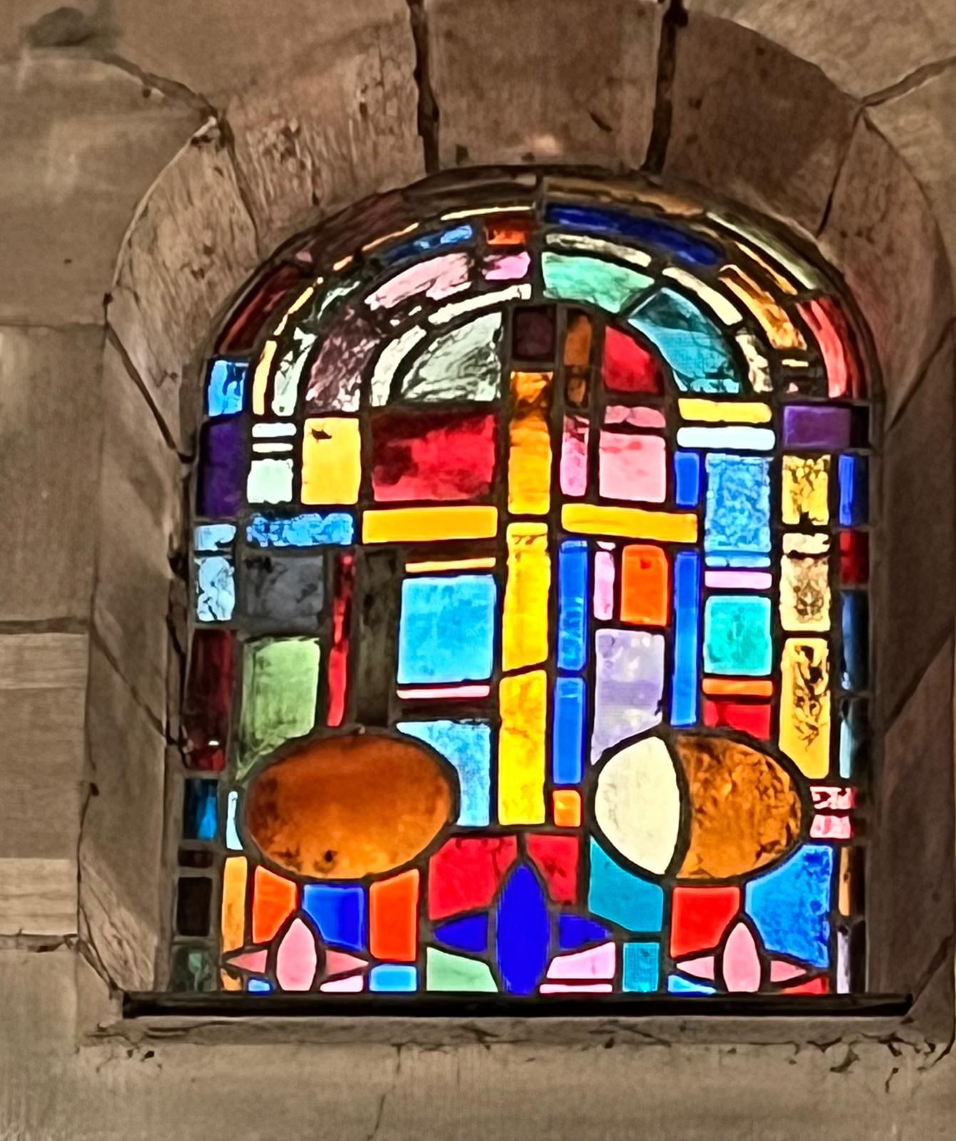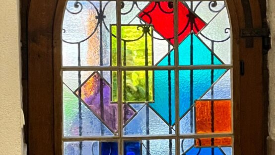 Bleiverglasung | Kathedralglas handgezogen, farbige Prismen im Fries | Entwurf: Susanne Dreisbusch